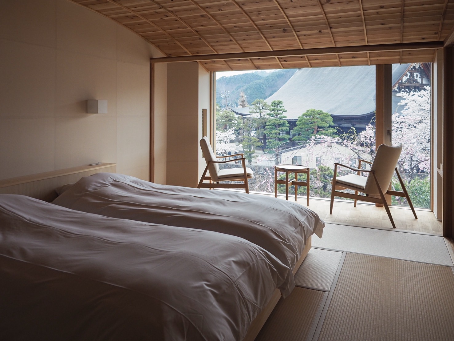 Natural materials such as wood and washi paper create a calm, understated space with room to breathe.